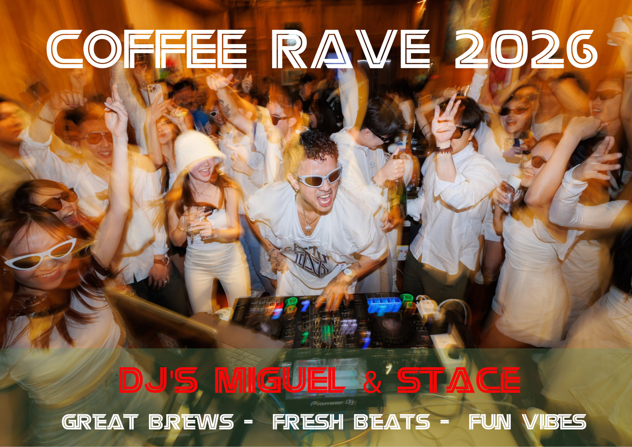 Morning Coffee Rave. Great Brews. Fresh Beats. Fun Vibes. Who’s Brewing “DJ Miguel & Stace”